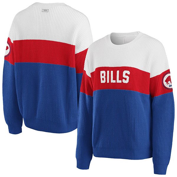 Women S Wear By Erin Andrews White Red Buffalo Bills Knit Colorblock Sweater